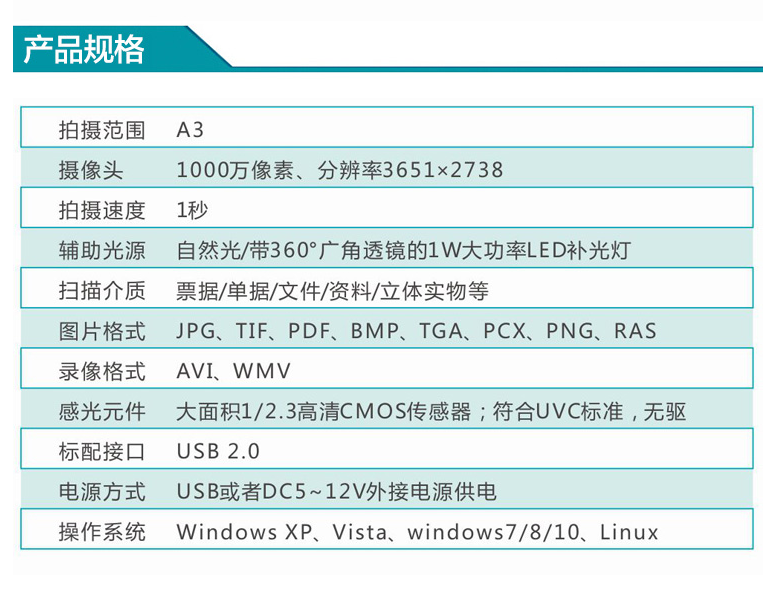 掃描光源  :   LED