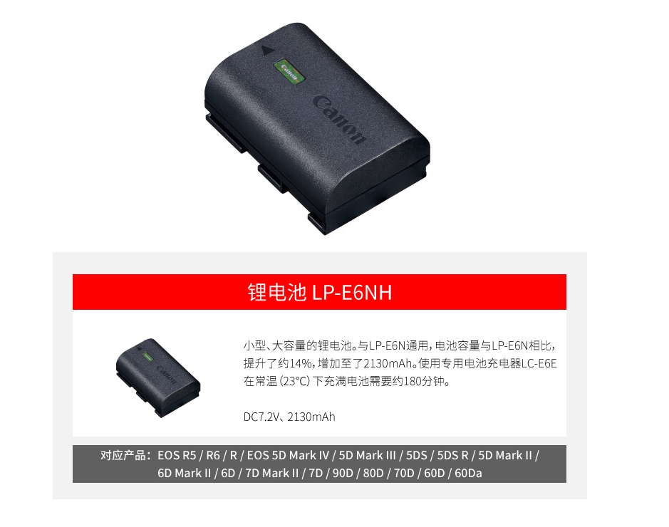 佳能/CANON LP-E6NH 相機電池/充電器 原裝電池 原廠包裝